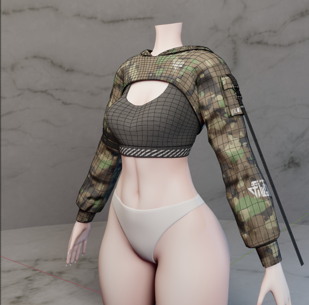 ARC-C2 - Cyberpunk Streetwear Croptop - Rigged VRChat Clothing - Modular Avatar ready - 10 Designs